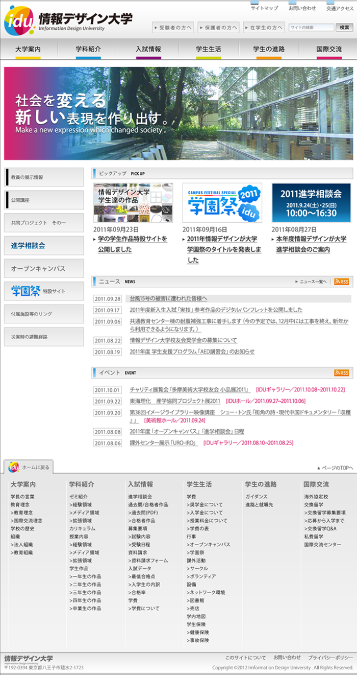 課題のテーマは「架空の大学を想定してWEBサイトを一から作る」でした。