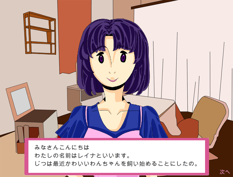 ストーリーは女の子とオオカミのラブコメでディです。右下にある「NEXTボタン」をクリックして次のページへと飛びます。実際には1枚のイラストに対して何十個ものセリフがあります。