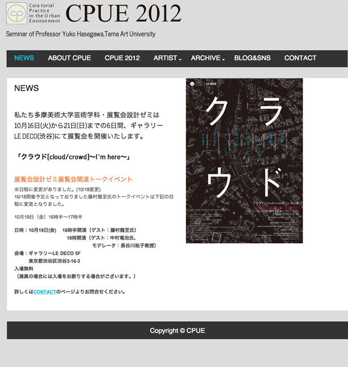 お仕事で制作したウェブサイトです。大学の先輩からの依頼で制作しました。ゼミ展覧会の告知サイトです。